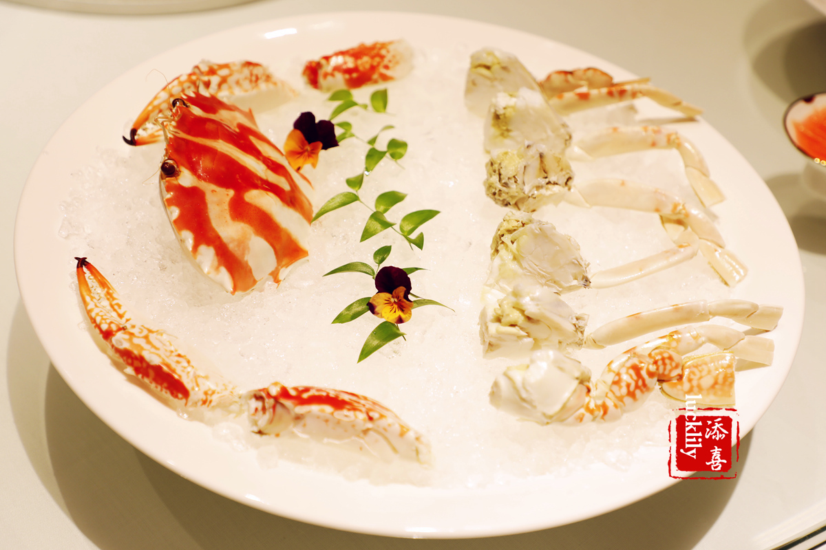 潮式冻大红花蟹可以说是潮州菜的鲜味之魁。冻蟹之美,美于味鲜。是海水清甜、咸香的味道。熟后慢慢自然冷却,让海水的鲜味能够有效及时地被锁住,原本就饱满的肉质变得更加紧致和鲜甜。
