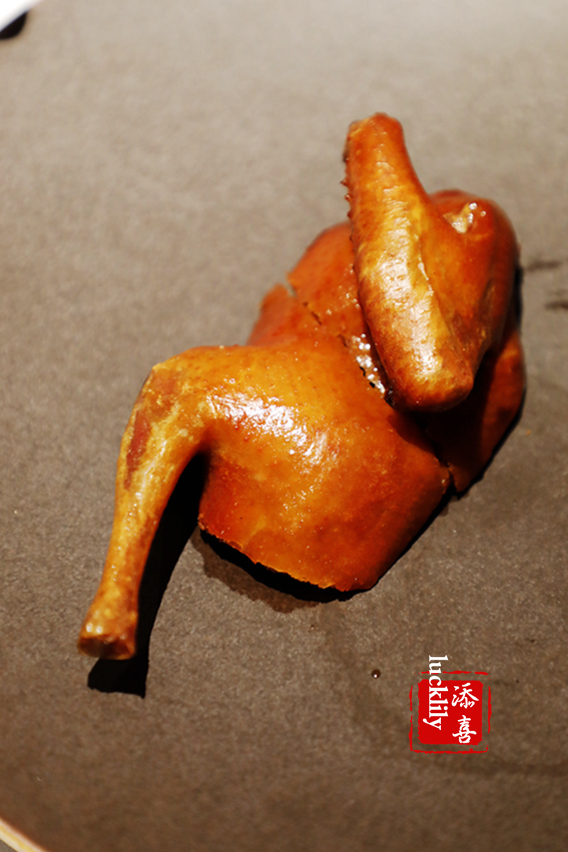 玻璃乳鸽,几乎所有的粤菜酒楼都有乳鸽这道菜。大多是先卤、上皮水、再炸的1.0版乳鸽,或是将熟炸改成生炸的2.0版乳鸽。东富的这道3.0版乳鸽进化为玻璃脆皮乳鸽,所谓“玻璃”,在于乳鸽表皮的一层蛋白浆,有了这层蛋白浆,乳鸽表皮酥脆,肉质多汁。