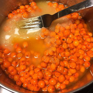 1. 沙棘果和糖按照2:1的比例,煮3-5分钟。不需要额外加水。