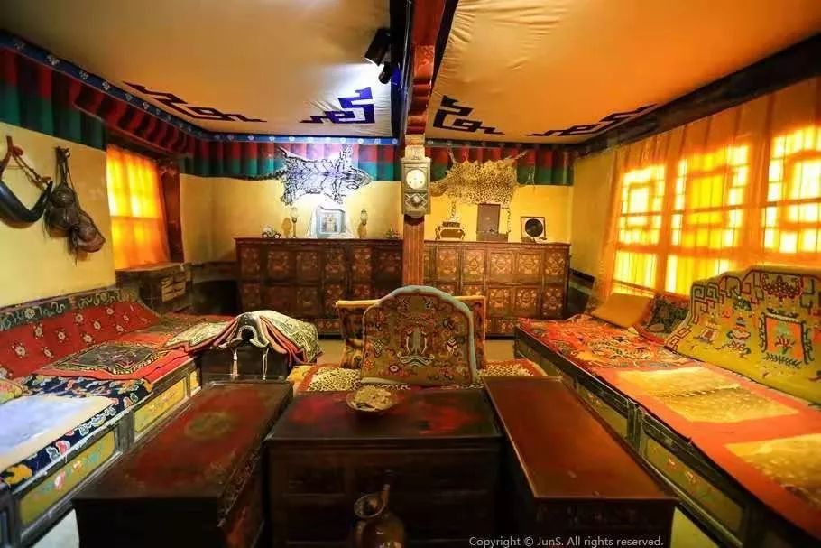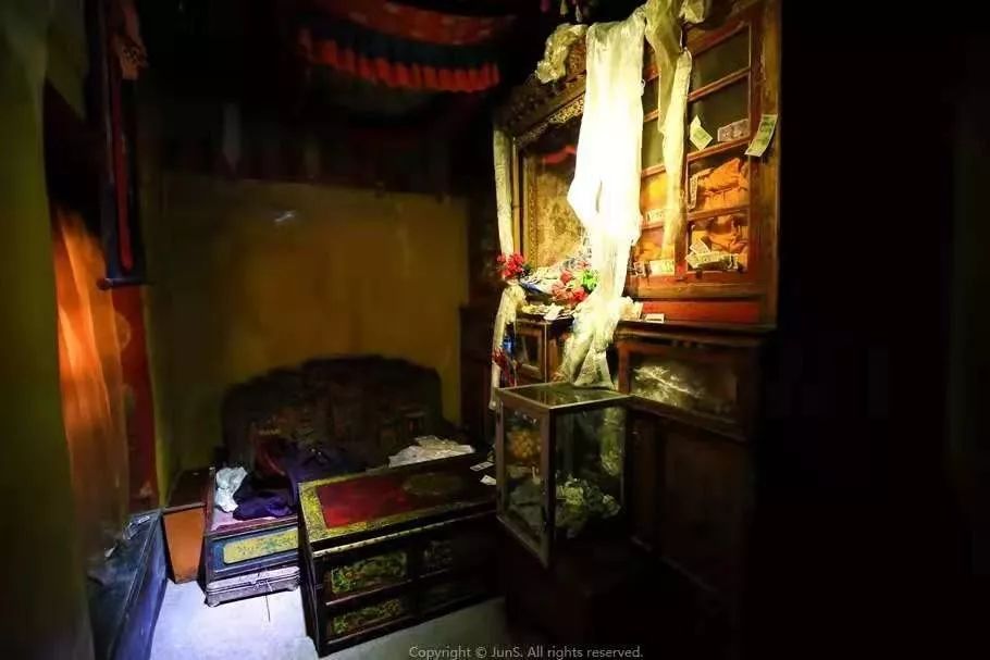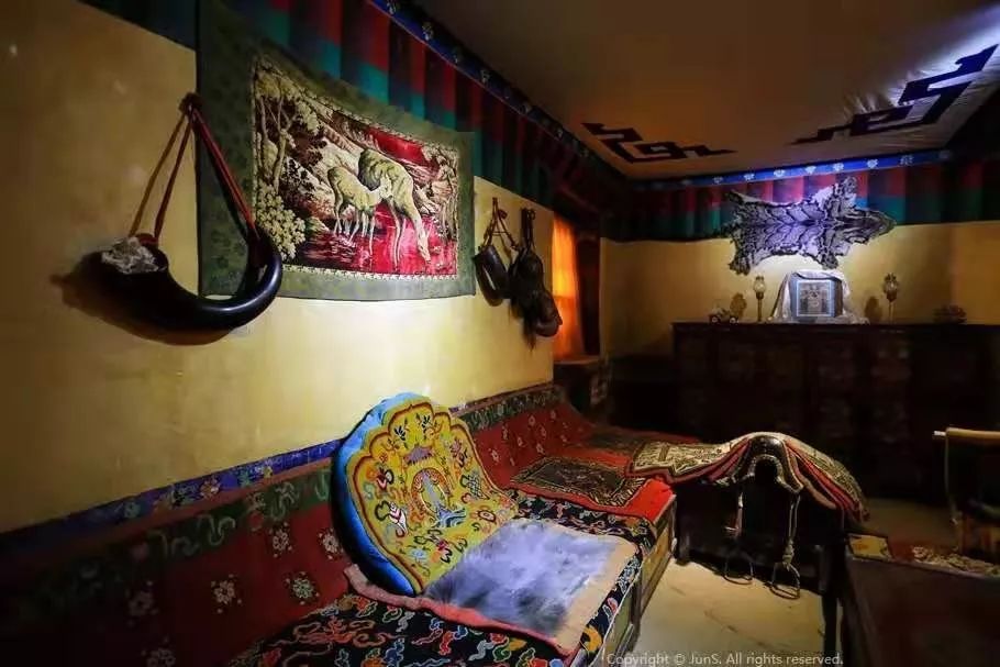 女主人使用的配饰都是金银、珍珠、玛瑙、宝石,各类珍贵唐卡、摆设、镀金佛像,就连做法事的法器都是用处女的腿骨而做。当然还有男主人喜欢的瑞士手表,主人日常所使用的银碗器具等等。