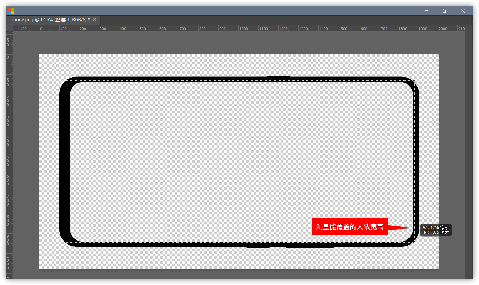 首先仍然是寻找一个透明的手机模型图。FaceBook 提供了一些质量较高的真机模型图,自行抠图或绘制也可以。总之,需要有一个只有边框,其他部分都是透明的phone.png图,并且量出其可以覆盖的高宽。