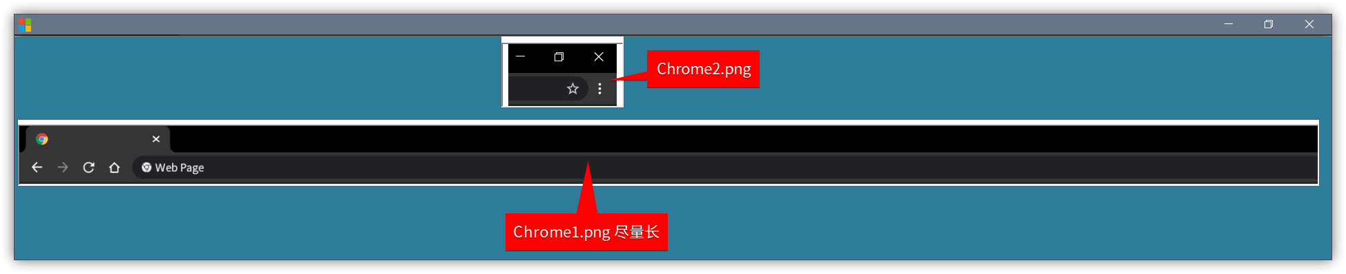 然后,使用修图工具删除一些不必要的元素,并且将其截成两部分,分别保存为包含左半部分主要元素的chrome1.png和包含窗口操作要素的chrome2.png。这么做的原因稍后解释。