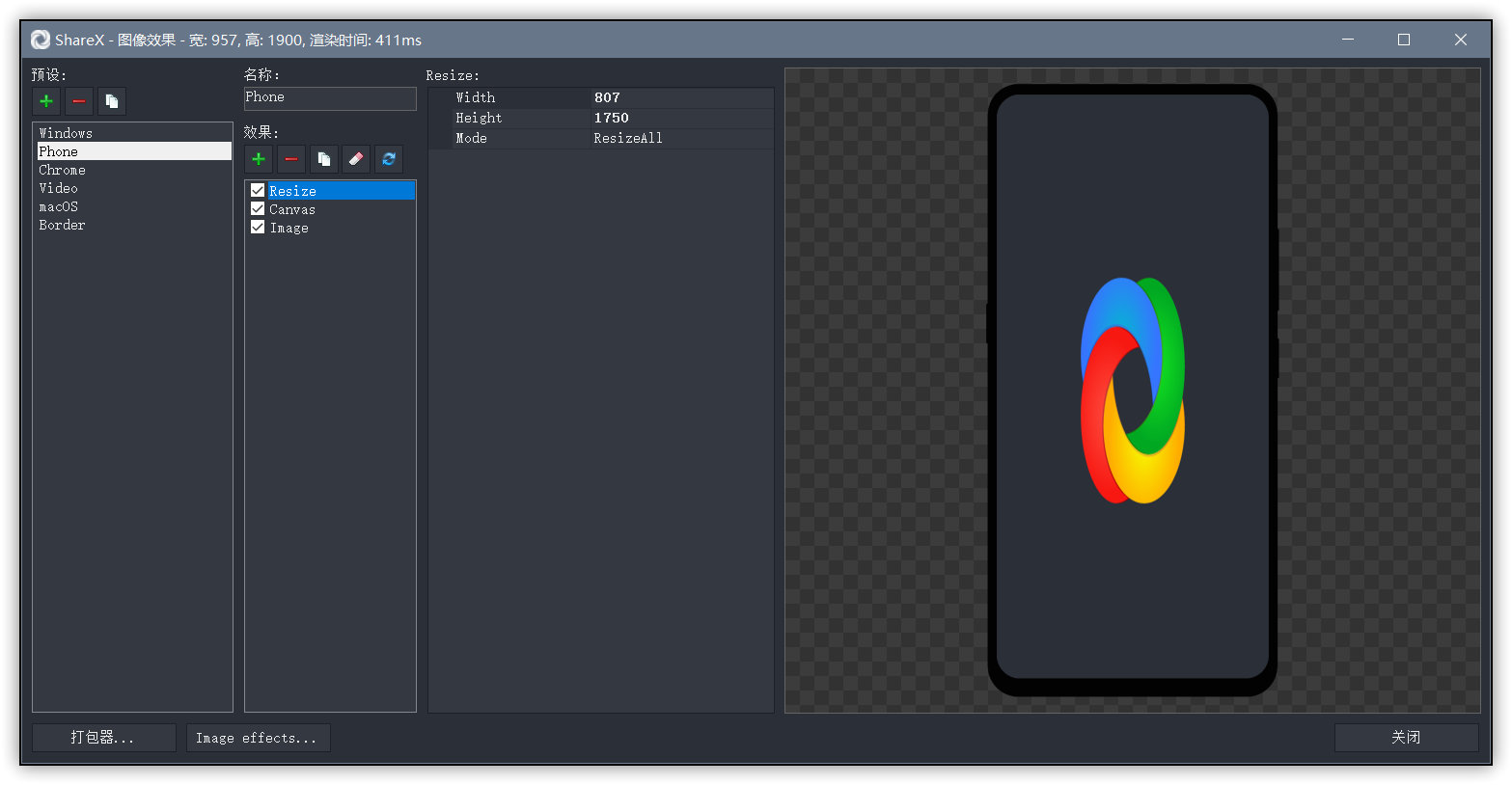 另一个比较普遍的需求是给手机截图配上手机模型,ShareX 也能完成。