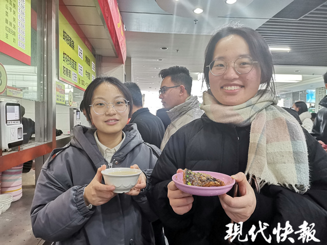 食堂里,同学们一边大快朵颐,一边纷纷打开手机,将这份“冬日的温暖”发在了微信朋友圈:“我们成了‘别人家的大学’。”
