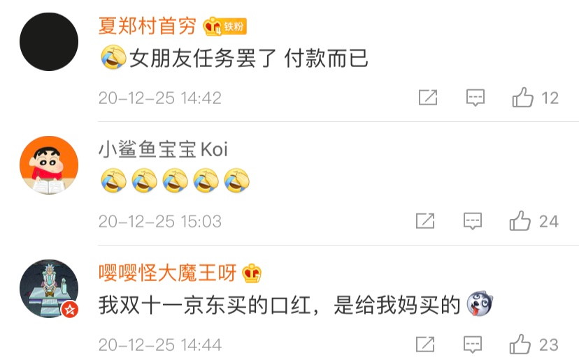第一,为女朋友或家人购买。在京东发布的双11口红购买数据下,有网友评论“女朋友的任务罢了”、“给我妈买的”......