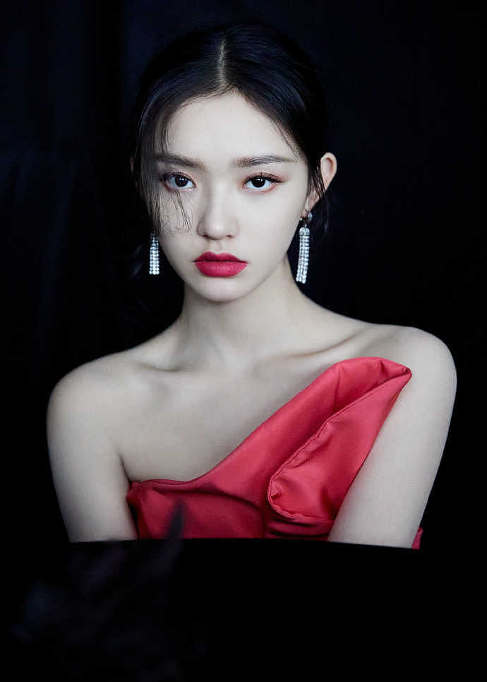 林允火龙果色高开叉礼服演绎极致甜美 盘发露一字肩小露性感