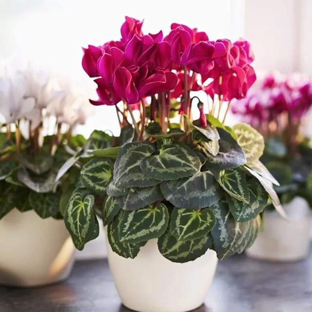 春节期间会有很多亲友登门,在家中摆放一盆仙客来,有喜迎贵宾的寓意。与朱顶红不同,仙客来的花期为1~4月,本身就是春冬开花的植物,可耐0度低温,普通家庭的冬季室内温度足够让它开花。