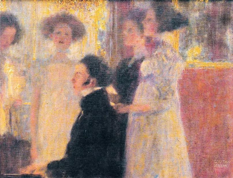 1876年,克里姆特进入了维也纳的艺术与工业学院,在这所学校里,他学到了不同时代的装饰技巧,进行了不同风格的绘画尝试。