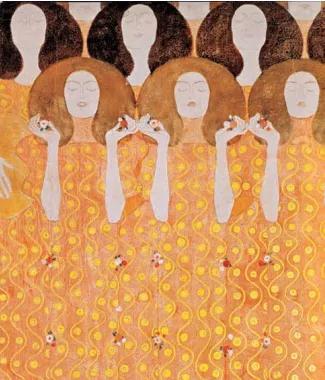 克里姆特吸收了其他分离派艺术家的意见,为“艺术之家”设计了一套以贝多芬《欢乐颂》交响曲为主题的壁画饰带。