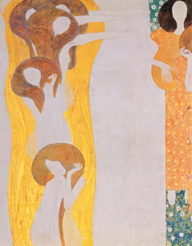 《贝多芬饰带》(Beethoven Frieze)之《对欢愉的渴望》局部 (Longing For Happiness) 1902年 维也纳分离派展览馆