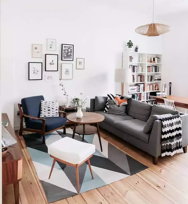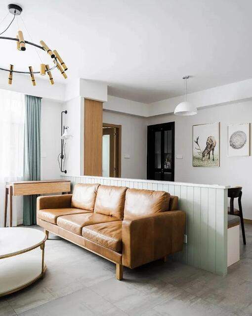 不靠墙的沙发,可以作为隔断使用将空间一分为二。一部分做客厅,另一部分可以作为餐厅或者小书房。