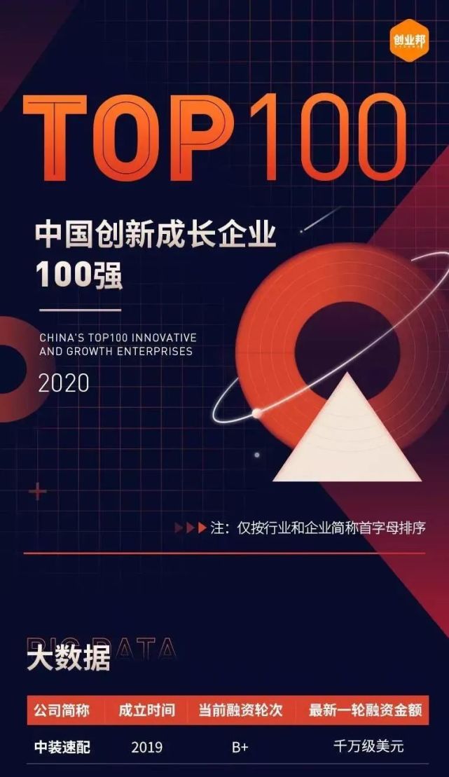 △中装速配荣登“2020年中国创新成长企业百强榜”