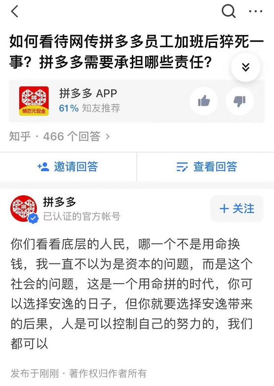 拼多多用极少的人,创造了极高的市值,本身就是员工可能在过度付出!