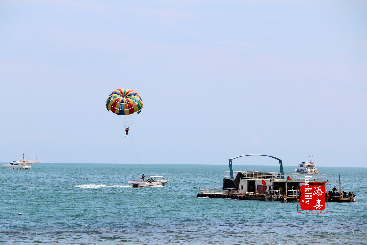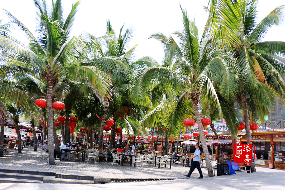 整个大东海旅游区就是一个大的海湾,是免费对外开放的,沿着这个海湾,有很多的滨海商业,比如特产小吃广场、海上游乐项目等。