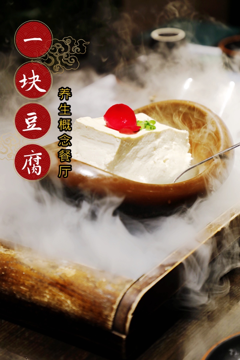 一块豆腐:豆腐的原材料大豆来自东北建三江农场有机大豆生产基地,营养丰富,粒粒饱满,石磨手工豆腐是经过石磨碾制、人工过滤、手工挤压、卤水点脑、等传统的制作工艺来完成,白嫩、细软、醇厚的豆花香味。