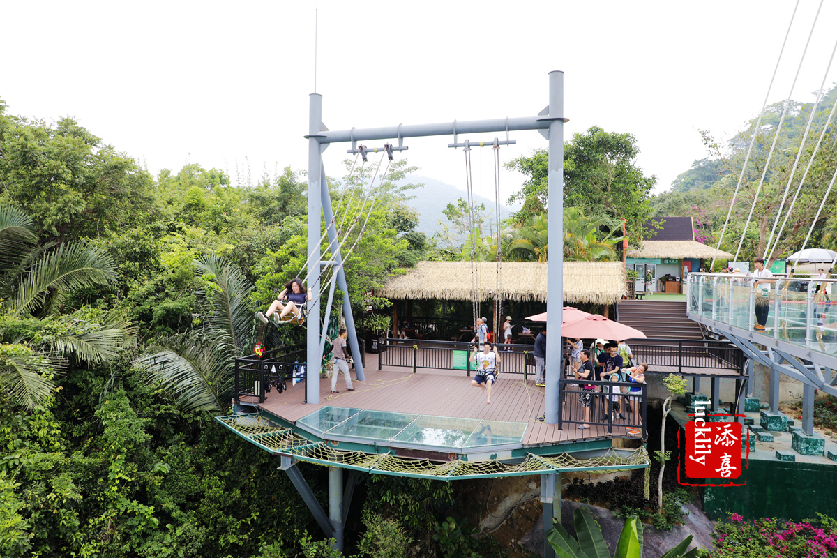 我也去玩了这个高中秋千,推秋千的小哥实在太卖力了,整个人跳起,挂在秋千上,然后让秋千弹出去,真是够刺激的。在这里想要拍摄,建议留一个在玻璃平台上拍过来最为清晰,拍摄或是录视频视角也是最好的。
