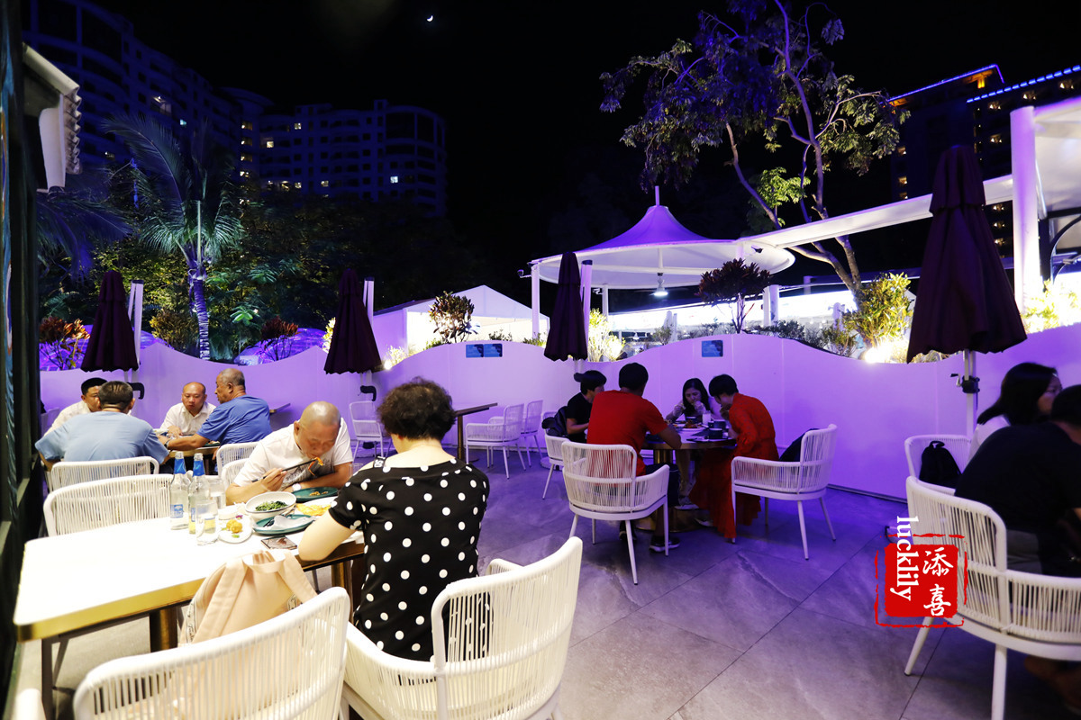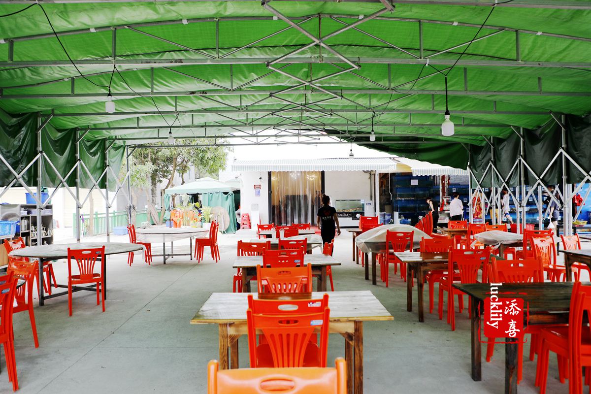 林姐香味海鲜海棠湾店门面非常的大,露天广场上搭起了可以容纳百人就餐的帐篷餐厅。而餐厅本身是1栋2层小洋楼,1楼是大厅,2楼是包厢,干净整洁,前来就餐的客人,大多是我一样的游客。前台还为客人提供了行李箱托管的服务。