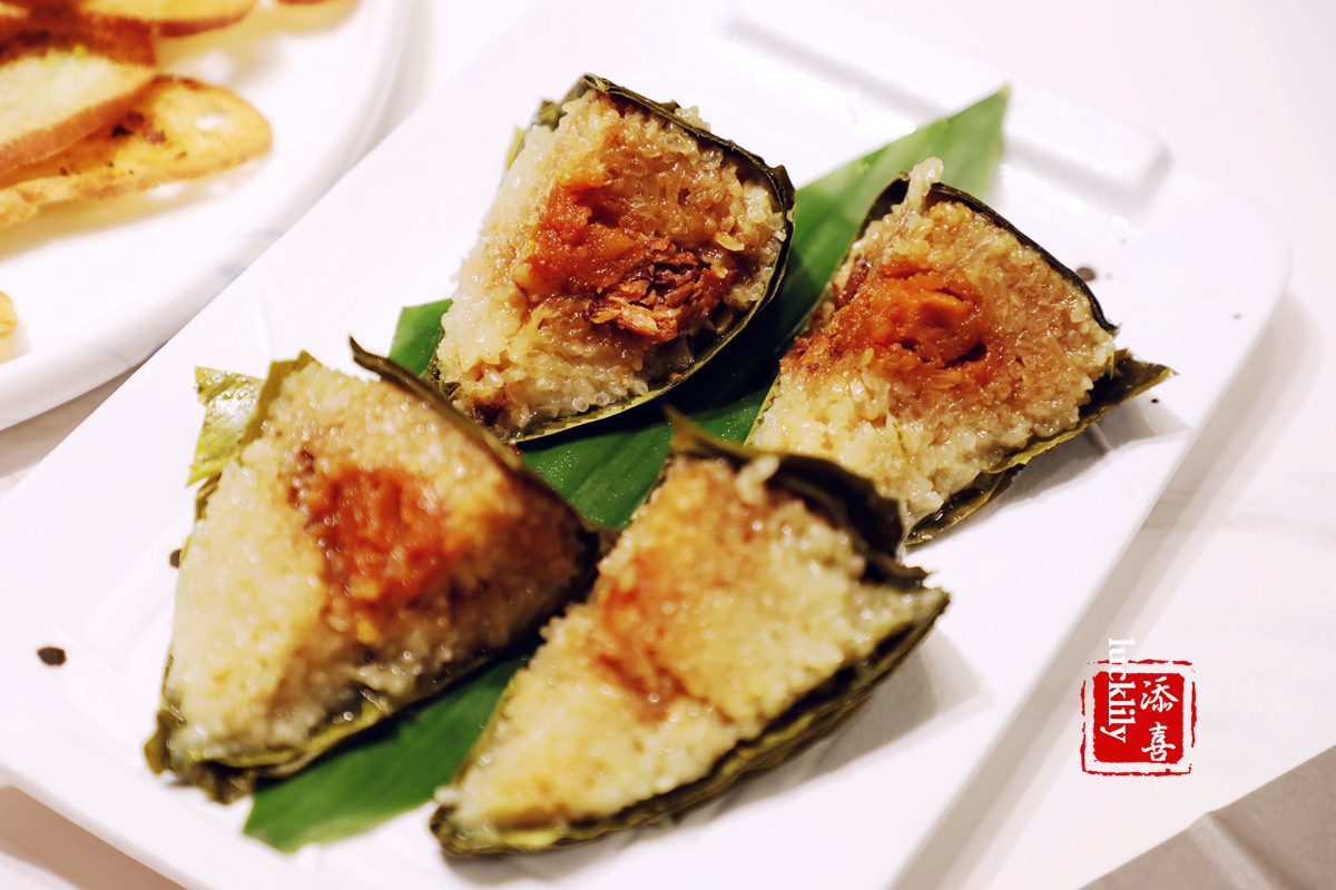 定安黑猪蛋黄粽子:定安的黑猪肉果然香!蛋黄肉粽本来就是最爱吃的粽子,用黑猪肉来入馅更是锦上添花,馅料很丰实,带粽叶切成四块,方便和朋友一起享,不至于一整个吃下去吃不下别的了。