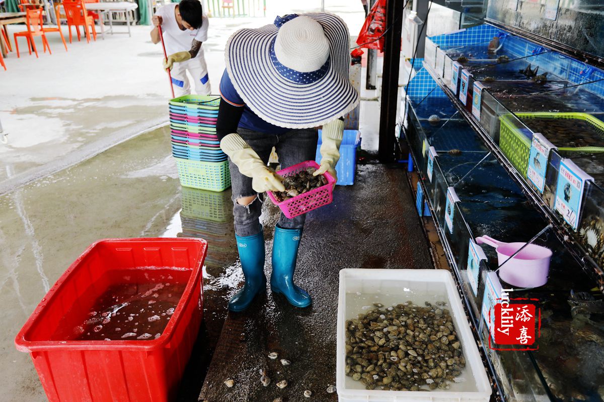 林姐香味海鲜门口就有一个海鲜卖场,明码标价,丰俭由人,所有的海鲜都是自己挑选的。管理海鲜卖场的阿姐非常的地道,我亲眼看到她正将一箩筐刚刚到货的蛤蜊中将不好地挑走。