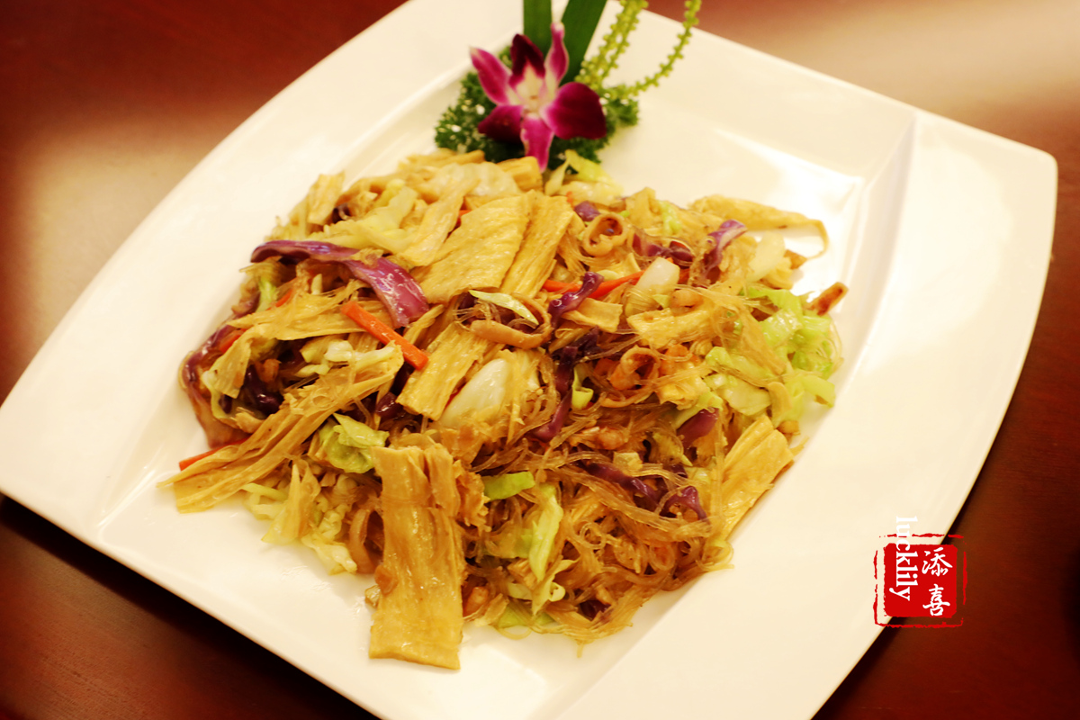 海南的特色粉,我们是当主食点的,结果头一道就上来了,原来这是海南喜宴用来招待宾客的吉祥菜,一般都是头盘。海南粉口感Q弹香滑,特别适合搭配海南当地的黄灯笼辣椒,吃起来超爽。