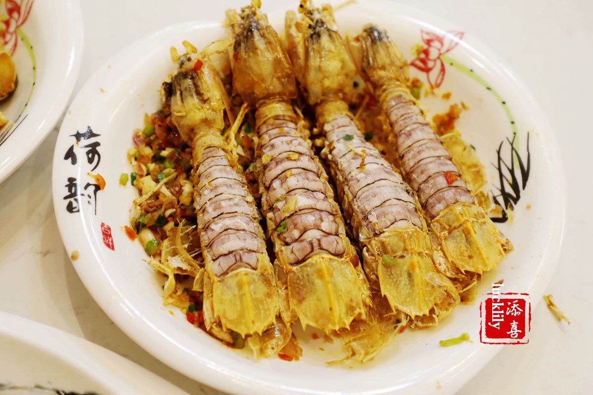椒盐皮皮虾:我的大爱,每次来三亚都要吃上几次才满足,皮皮虾是我自己挑了称重的,上桌之后是店员来帮我剥,他们带上一次性的手套,能把虾肉完整的剥出来,吃起来真心过瘾啊!