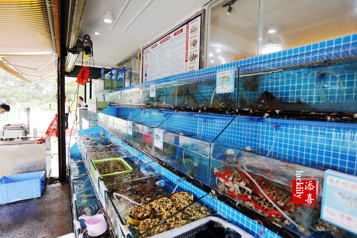 林姐香味海鲜有自家的海鲜卖场,就是隔壁的门面,所有的海鲜都是客人现点活杀的。