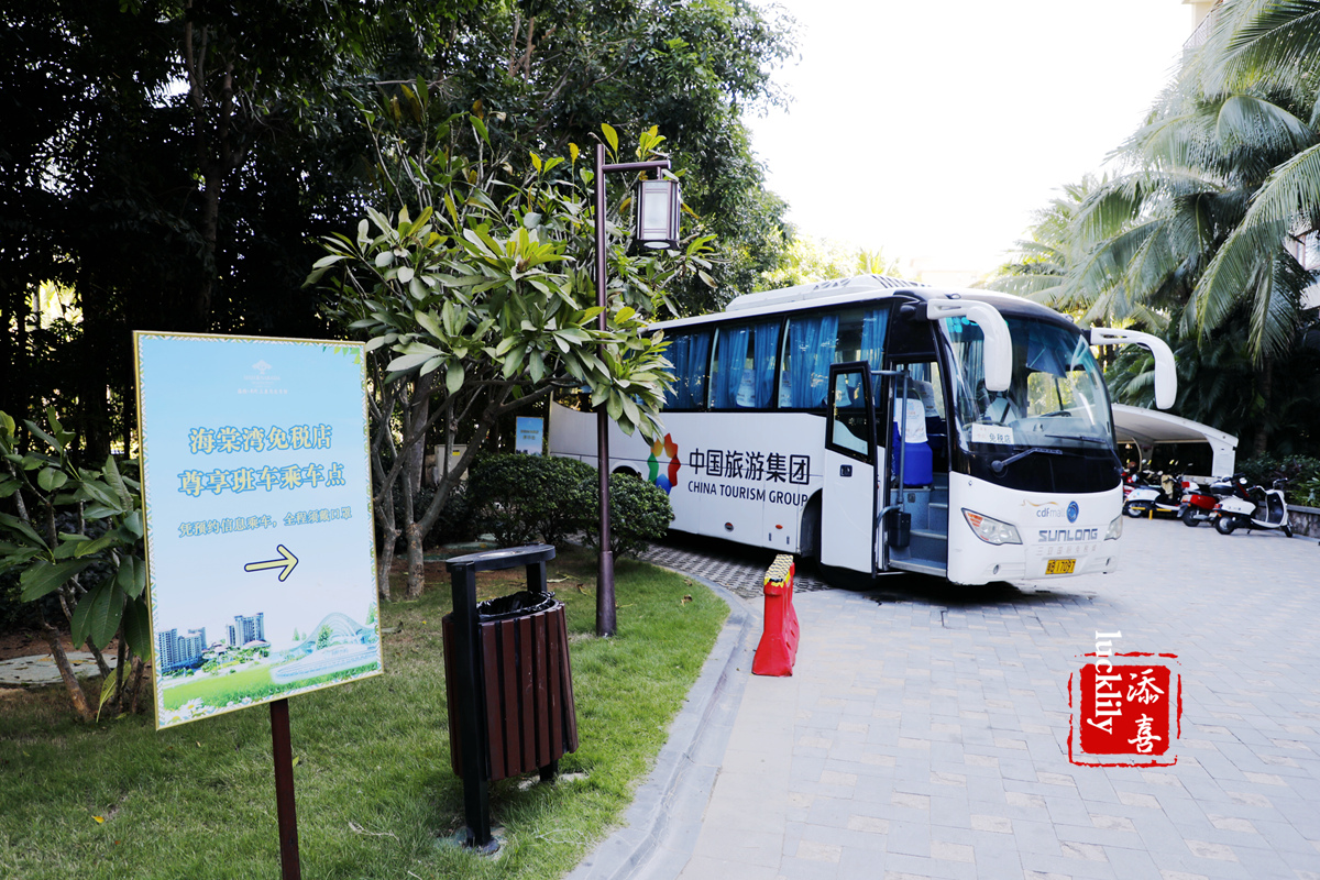 酒店有到三亚国际免税的直达班车,我们早上吃完早餐,退了房在礼宾部寄存了行李,搭乘班车前往免税城。