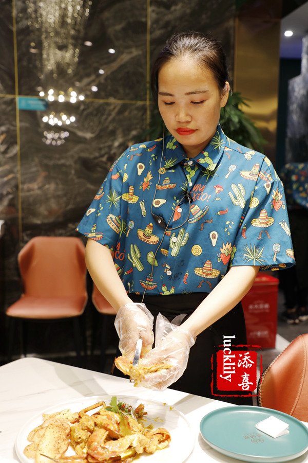 店员贴心伺服,连蟹都会帮你拆肉,不用自己动手!