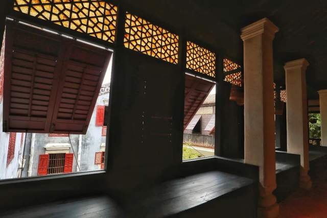 百叶窗回廊从二楼看更具风情,坐在榻上听雨赏花好不雅致▼