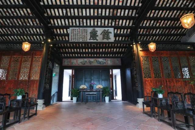 余庆堂主厅设置在住宅的二楼,在当时的广式大宅布局上就显得非常的稀有了。门厅采取的是抬梁式结构,显得非常有气势▼