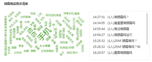 同时,我们通过“弹幕商品需求清单”发现除了直播间主推商品和抽奖商品外,但有不少观众在直播间中,留言想要“眼霜”,可以发现,广东夫妇的观众们对于护肤产品的需求是非常旺盛的。