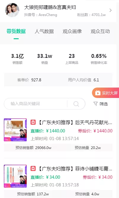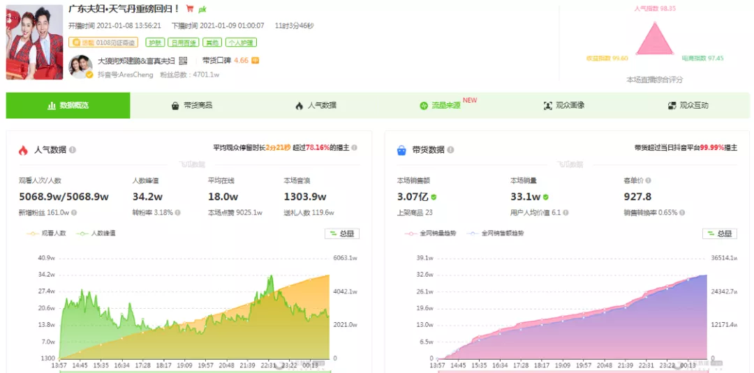 接下来,飞瓜来数据就来为大家解读为什么广东夫妇是怎么创造3亿的销售额,成为今年首个现象级直播间!