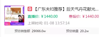 我们前面说到广东夫妇直播间的观众主要以18-35岁的女性为主,他们正是护肤品的目标人群,对于高价护肤品的接受程度是非常高的,因此哪怕是高价的天气丹,也能瞬间售罄爆单!