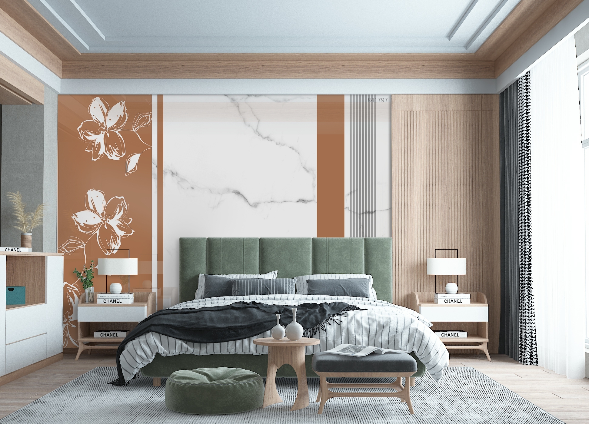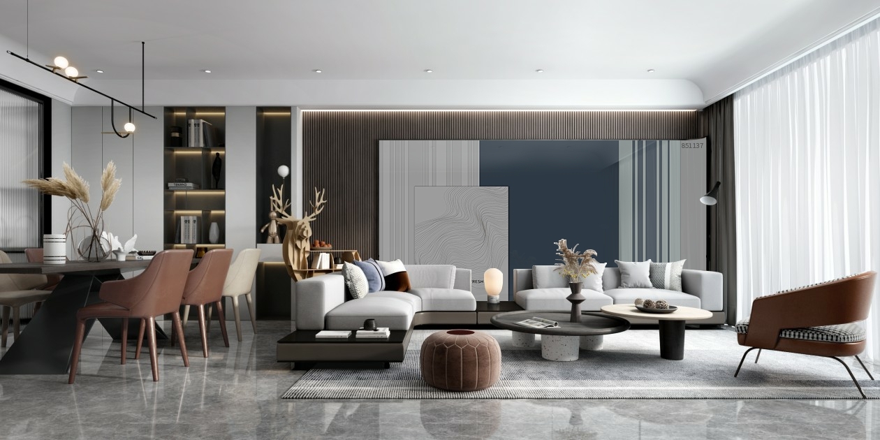 当木纹拉槽遇到莫兰迪色组合而成的便是最舒适的居家生活,天然的木纹温润舒适,搭配最较深的色系,温柔而平和、不张扬、不鲜亮,仿佛蒙上一层薄雾,却自带高级感,给人平和自持、舒缓优雅,又略显冷静的感觉。