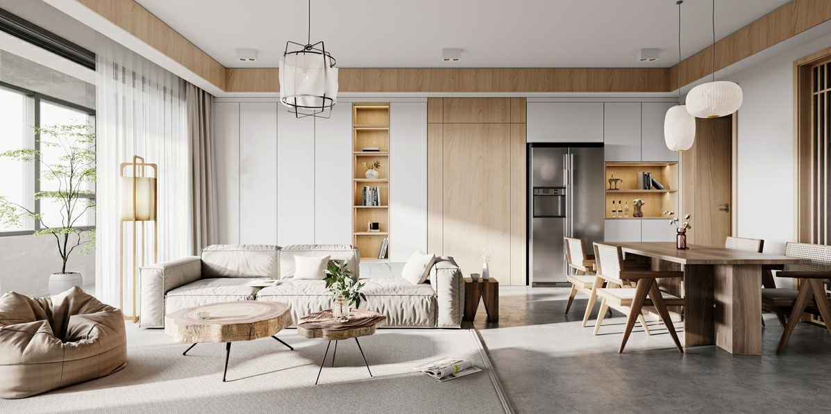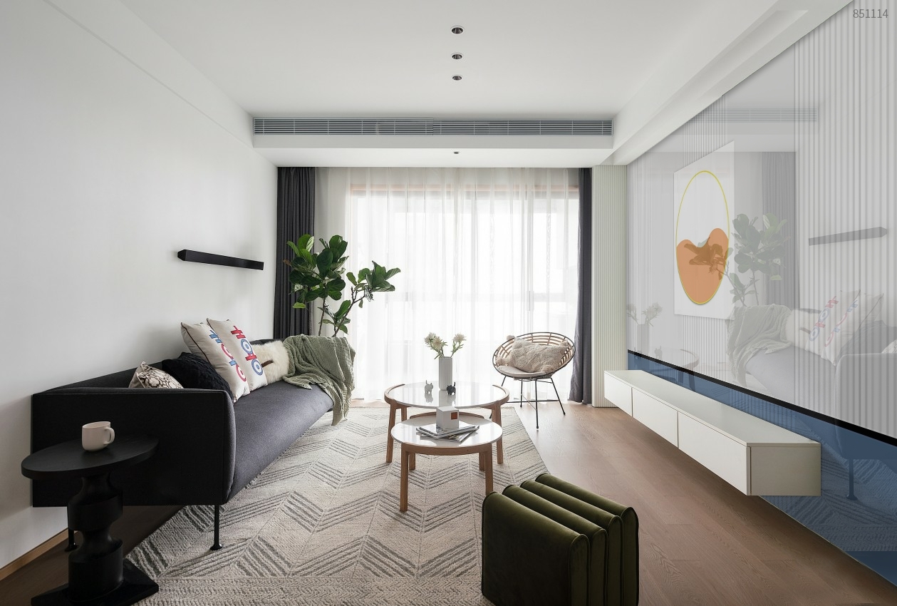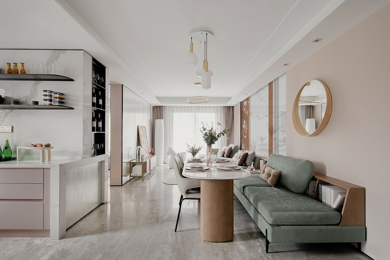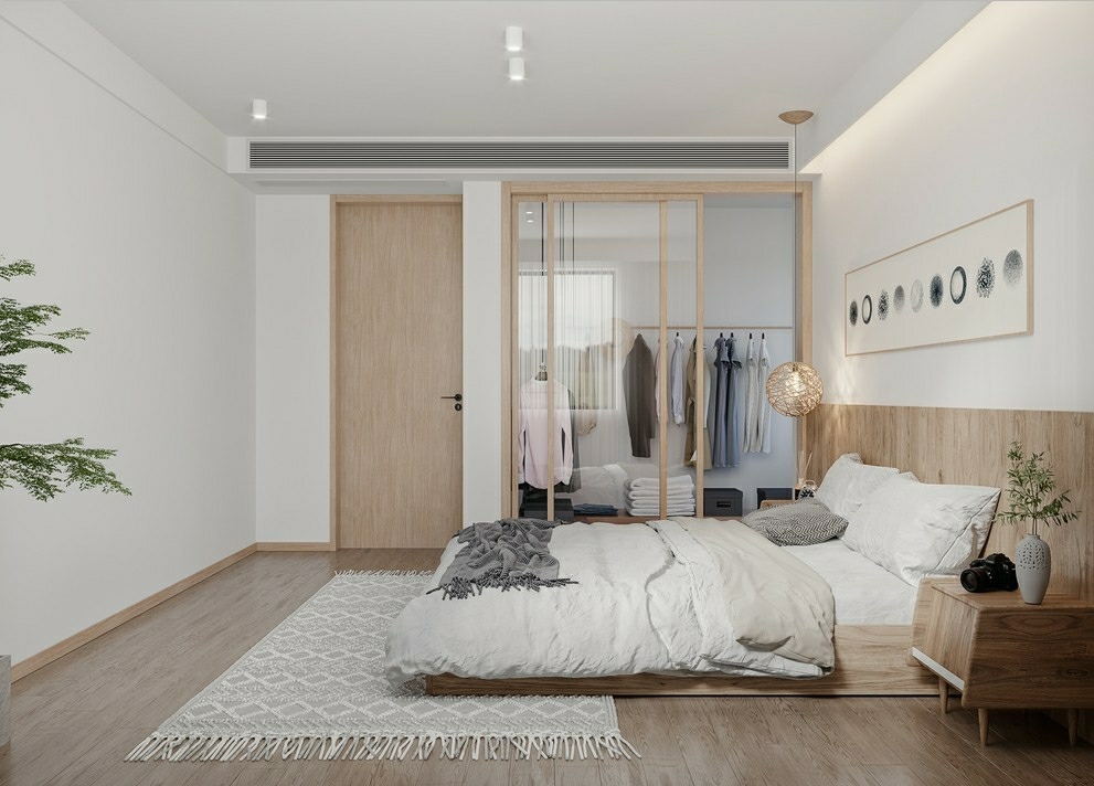 木纹加白色的莫兰迪的搭配让简约空间生动了起来,赋予空间柔和的变化性。