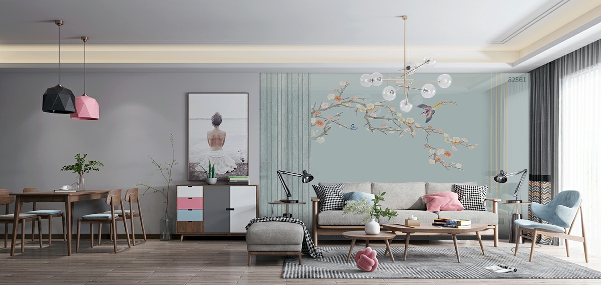 深色调的木纹家装也挡不住莫兰迪背景墙散发的魅力,看起来沉静大气,还带着一丝时尚感。选择被调和得很好的灰色调,不深不浅,不会太突兀,也非常好搭配。