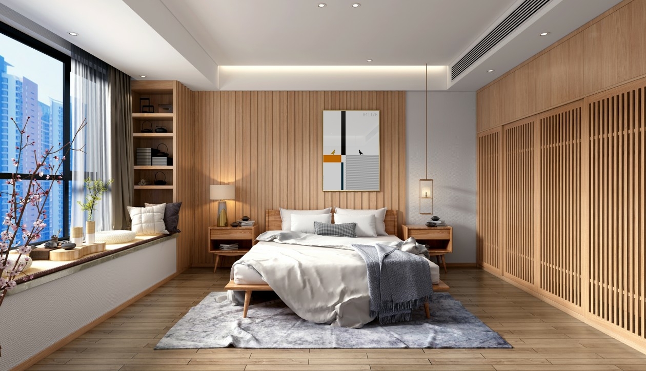 卧室简洁自然宽敞,原本卧室拥挤闭塞,旷大窗户改善通风采光,显然是个很明智的选择。