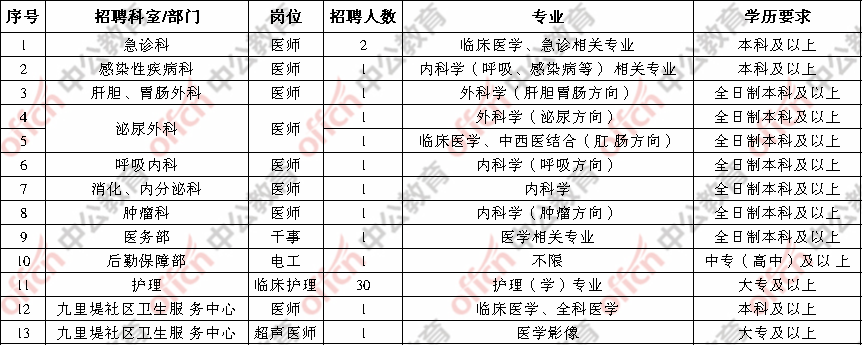 小编整理了岗位要求表如下: