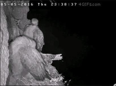 在一段视频记录中,展示了这样的画面,一对老鹰夫妇夜间在悬崖峭壁上的巢穴中休息,在夜间的时候它们遭到了一只猫头鹰的袭击。猫头鹰具有良好的夜间视野,它们能清晰的发现在悬崖峭壁上休息的老鹰,而老鹰则完全没有察觉到即将到来的危险,猫头鹰迅速而敏捷的抓住了一只老鹰,消失在夜色中。
