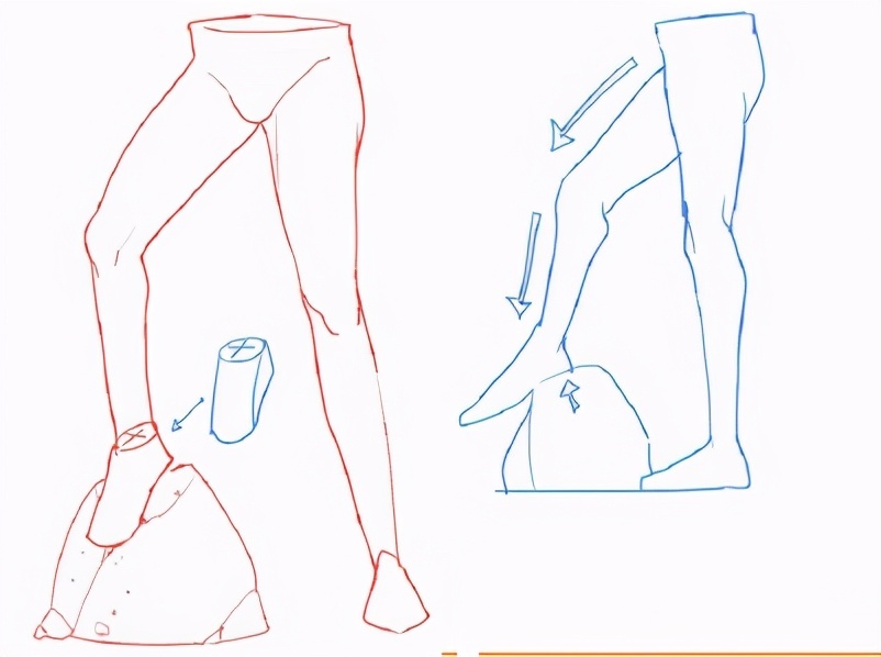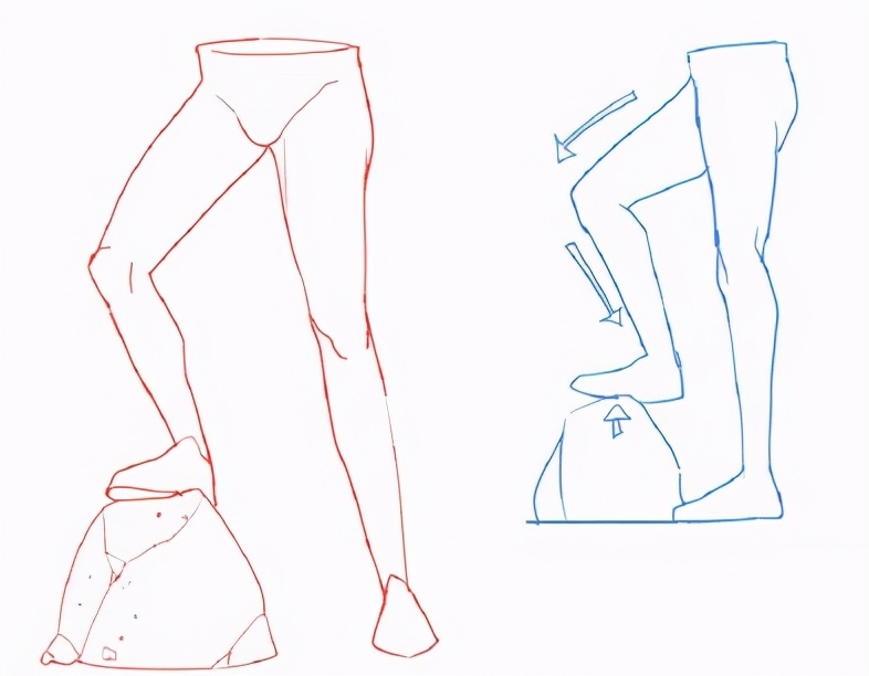 视角位置不同,腿的走向也不同,在画的时候千万不要生搬硬套