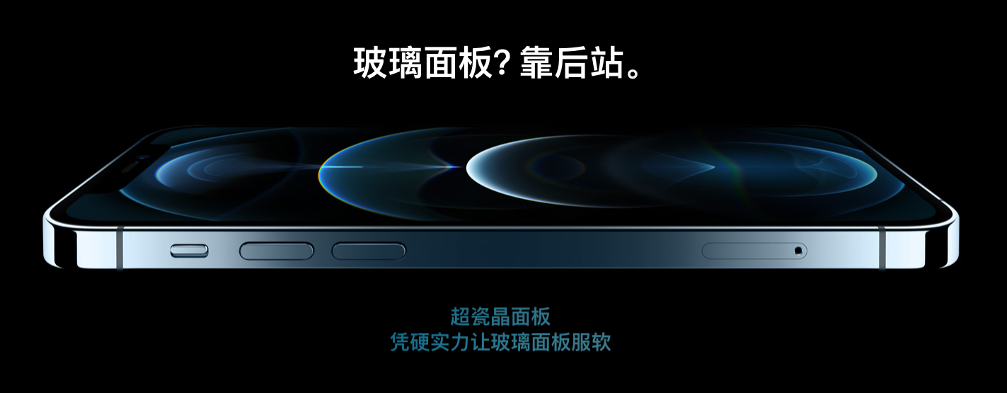 iPhone 12 则使用了「超瓷晶玻璃面板」。苹果表示其和康宁合作,通过「双离子交换工艺」让纳米级瓷晶体与玻璃合二为一。而纳米级瓷晶体的硬度比大多数金属还要高,因此超瓷晶面板的硬度大大超越了以往的玻璃面板,抗跌落能力提升了 4 倍。