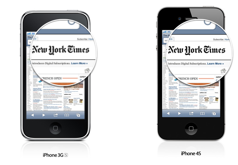 乔布斯在 iPhone 4 发布会上首次提出了视网膜(Retina)屏幕,表示 iPhone 4 的屏幕像素密度为 326ppi,超过了人眼识别的极限 300ppi。