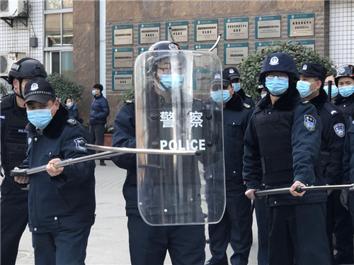 “你这个钢叉应该这样使用,钢叉和盾牌可以这样配合着使用······”1月13日上午,在西安医学院第一附属医院门诊楼前,10多名民警在为42名医院安保人员进行“反恐防暴”培训演练。