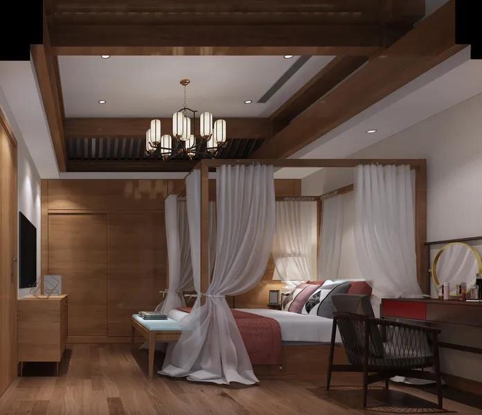 出了中堂,走入右手边的房间,便是卧室了。卧室内设计简约大气,内部搭配有卫生间、洗浴间、中央空调、地暖等现代化智能家居,让我们可以享受到现代化智能的便捷。