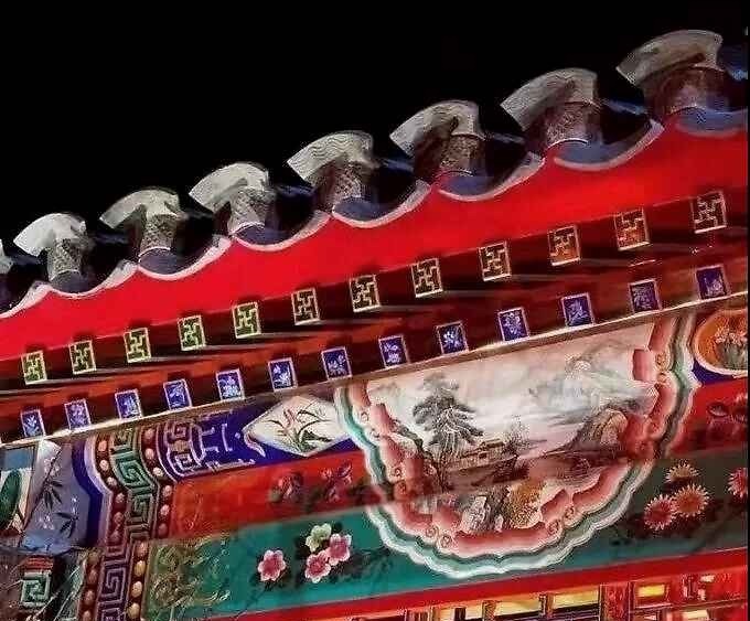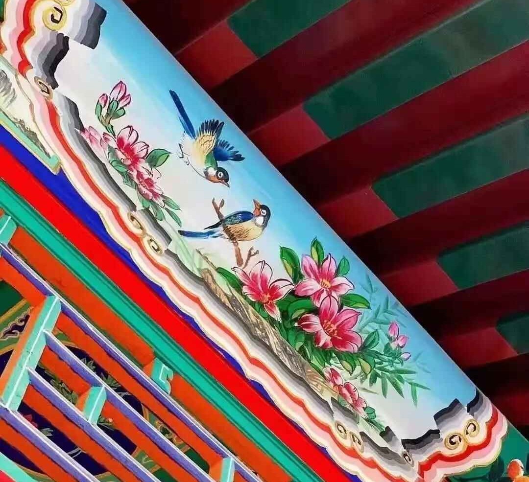 站在庭院中环视四周,可以看到四面房屋的柱子上有各种精美的花鸟鱼绘于其上,活灵活现,引人注目。