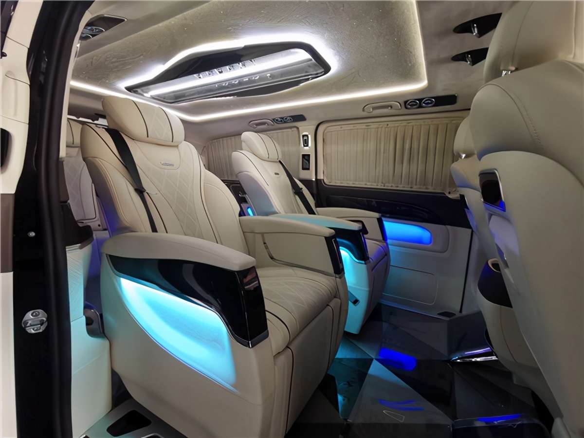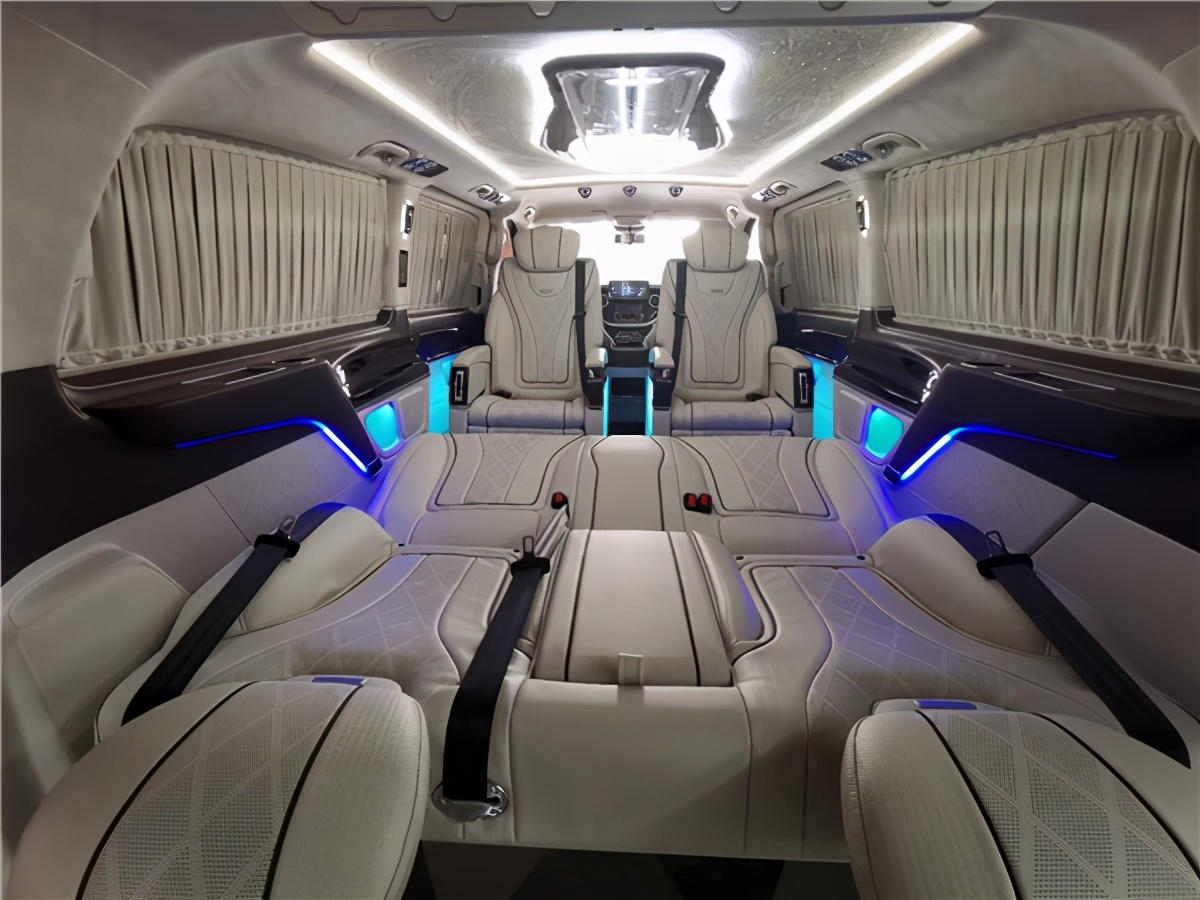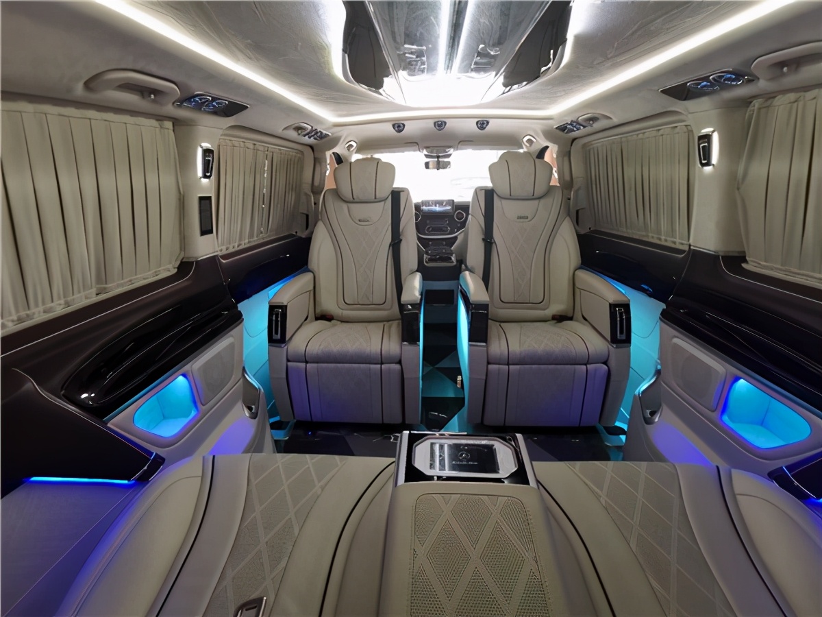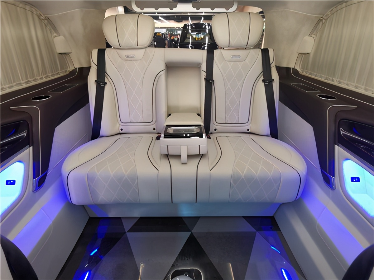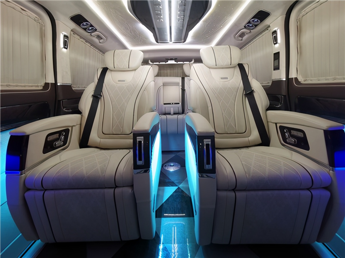 乘坐感受十分温馨,宽广的座椅就像是自家卧室的沙发一样,特别是整车装备了车身防侧倾设备,在高速过弯时也不会又太显着的测倾感,搭配内部整车豪华的氛围灯,带给您豪华殿堂级的感受;作为商务车,新款奔驰威霆改装迈巴赫版商务车的表现也是十分优秀的!