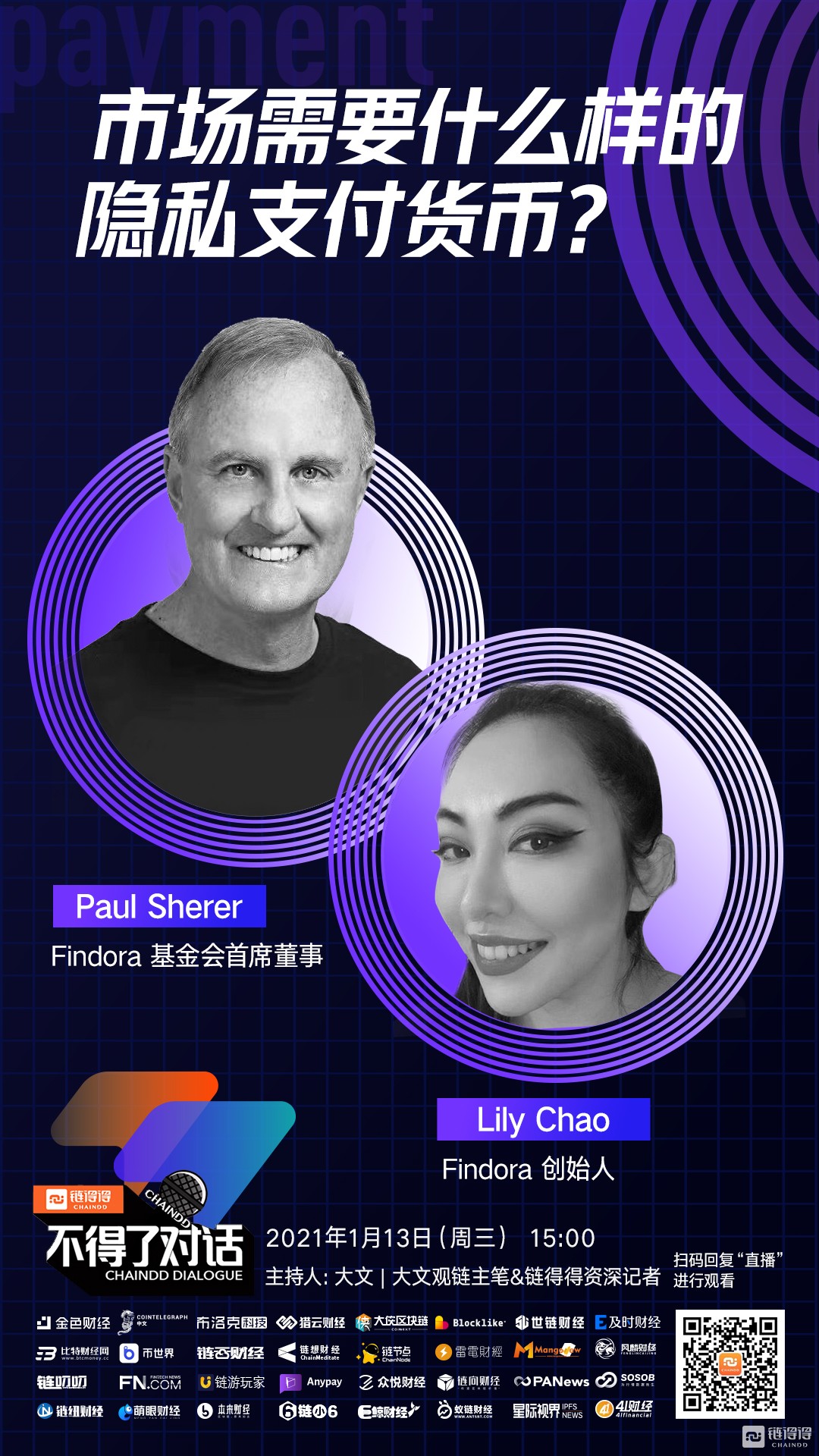 近几年市场上出现了一批以“隐私支付”为卖点的数字货币,包括DASH、Zcash、门罗币XMR、Grin、Beam等等,但这些货币在市场上并不占有优势地位。市场究竟需要什么样的隐私支付货币?1月13日15点,链得得“不得了”对话第26期,特别邀请到Findora 创始人 Lily Chao、Findora 基金会首席董事Paul Sherer ,共同探讨隐私支付货币的痛点和市场前景。