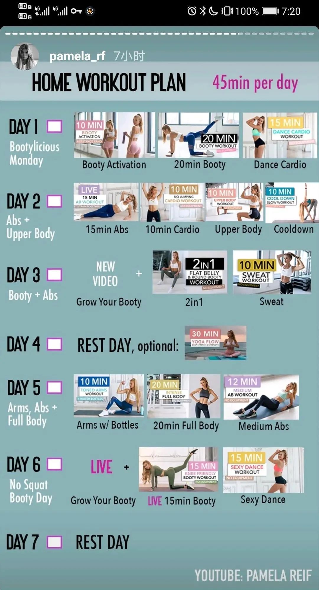 拿帕梅拉的“终极版每天45分钟”其中一天举例——