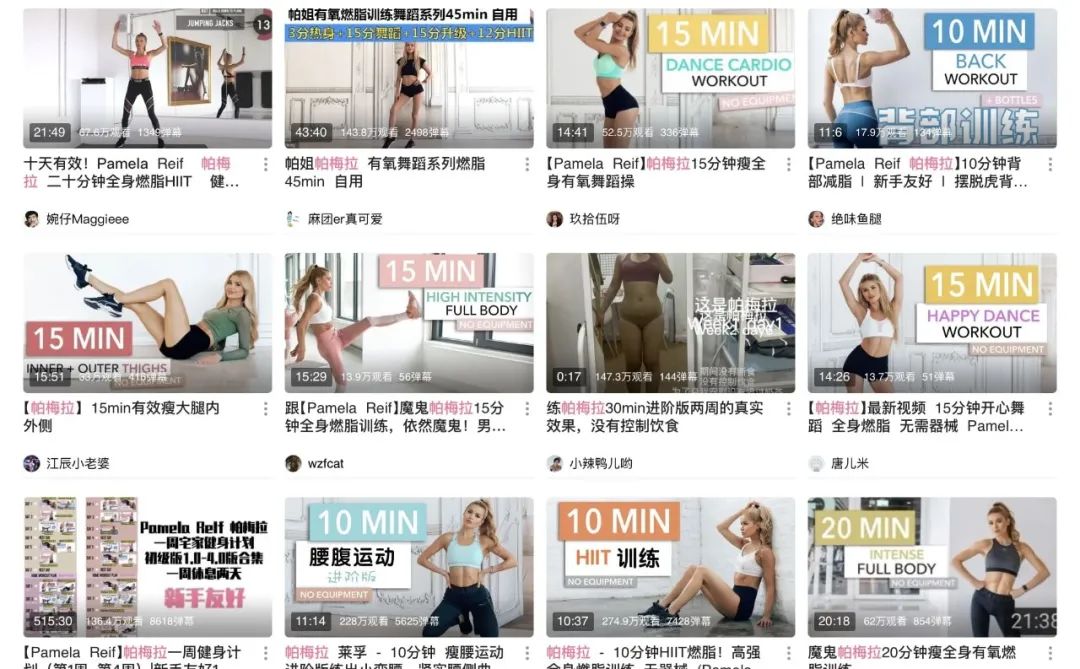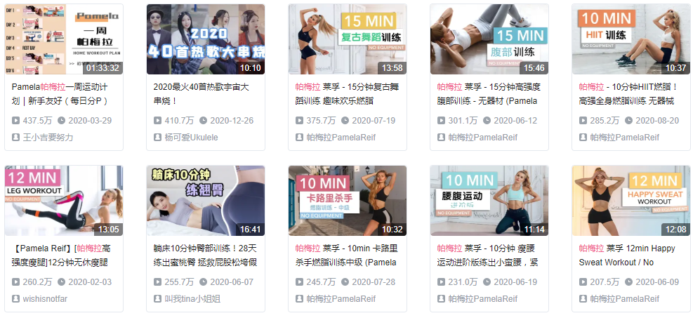 在B站,关于“帕梅拉”的视频播放量动辄就是百万级,受欢迎程度可见一斑。