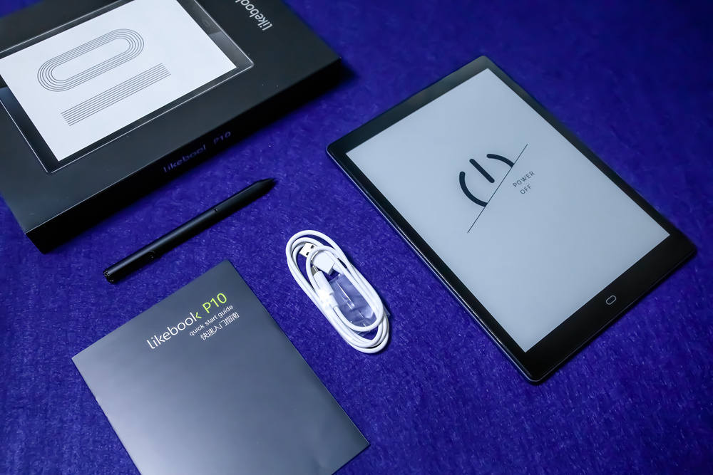 打开包装,盒子里面包含了博阅Likebook P10电子书阅读器、黑色手写笔、数据线以及一本入门指南。这里需要说的是手写笔配件为套餐版配置,标准版里并不包含。因为笔者平时看书就有写写划划的习惯,所以就入手了套餐版,这里大家可以根据自己的需求进行选择。